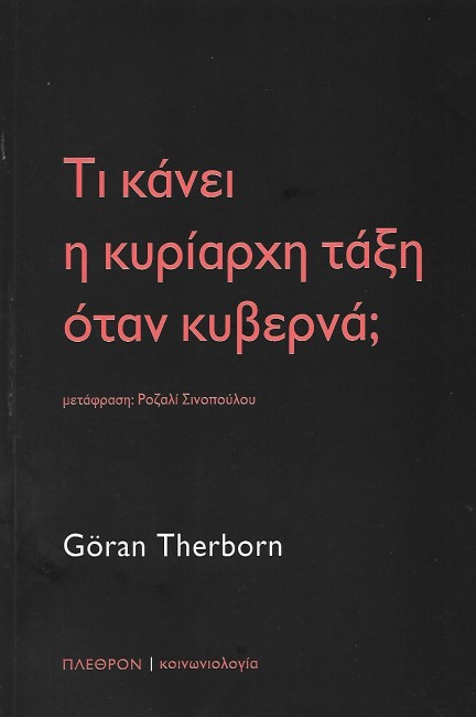 Η κρατική εξουσία της κυρίαρχης τάξης ασκείται μέσα σε μια αντιφατική και πολύπλοκη ολότητα που είναι σε διαρκή κίνηση και ανάπτυξη. Η ταξική πάλη επιδιώκεται μέσα σε αυτές τις αντιφάσεις και εξελίξεις και μέσω αυτών, ενώ οι ίδιες λειτουργούν μέσα στην ταξική πάλη και μέσω αυτής. Μια κοινωνική επανάσταση λαμβάνει χώρα όταν αυτές οι αντιφάσεις και οι αποσαθρωτικές διαδικασίες άνισης ανάπτυξης φτάσουν στο σημείο στο οποίο οι τρεις αναπαραγωγικοί μηχανισμοί, υπό την κυρίαρχη όψη τους, μετατρέπονται σε επαναστατικούς μηχανισμούς μιας νέας κυρίαρχης τάξης”. (Goran Therborn, από την παρουσίαση στο οπισθόφυλλο του βιβλίου)